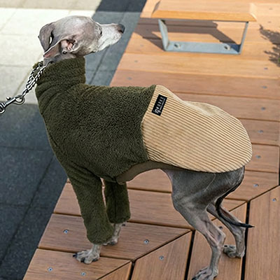 ボアコーデュロイプルオーバー/カーキ×ベージュ