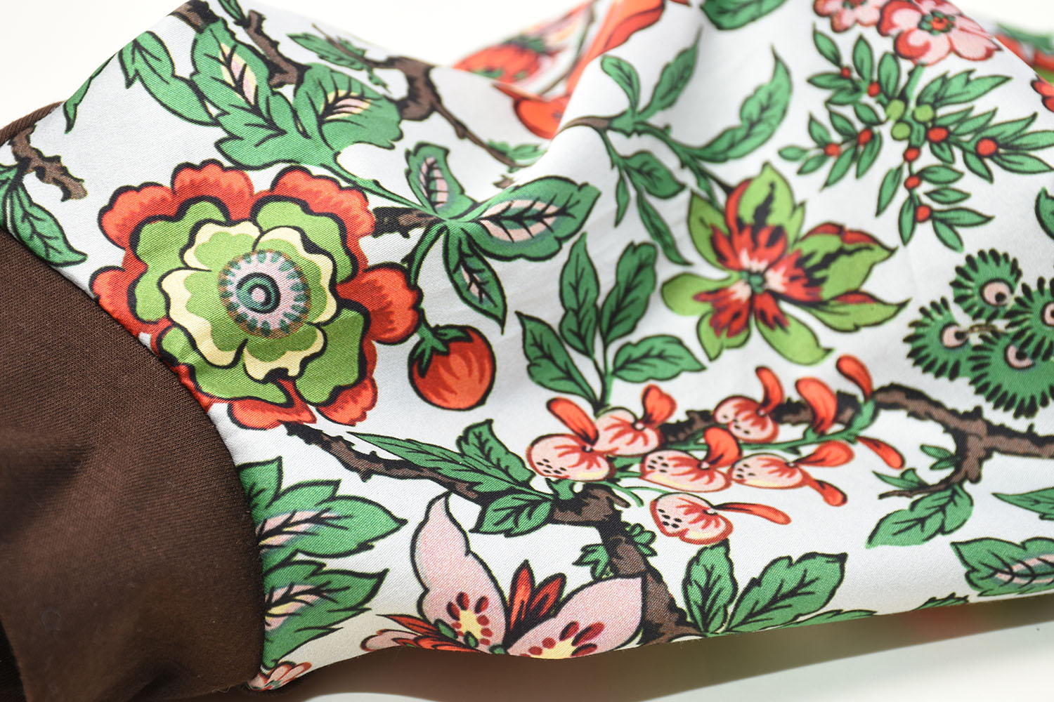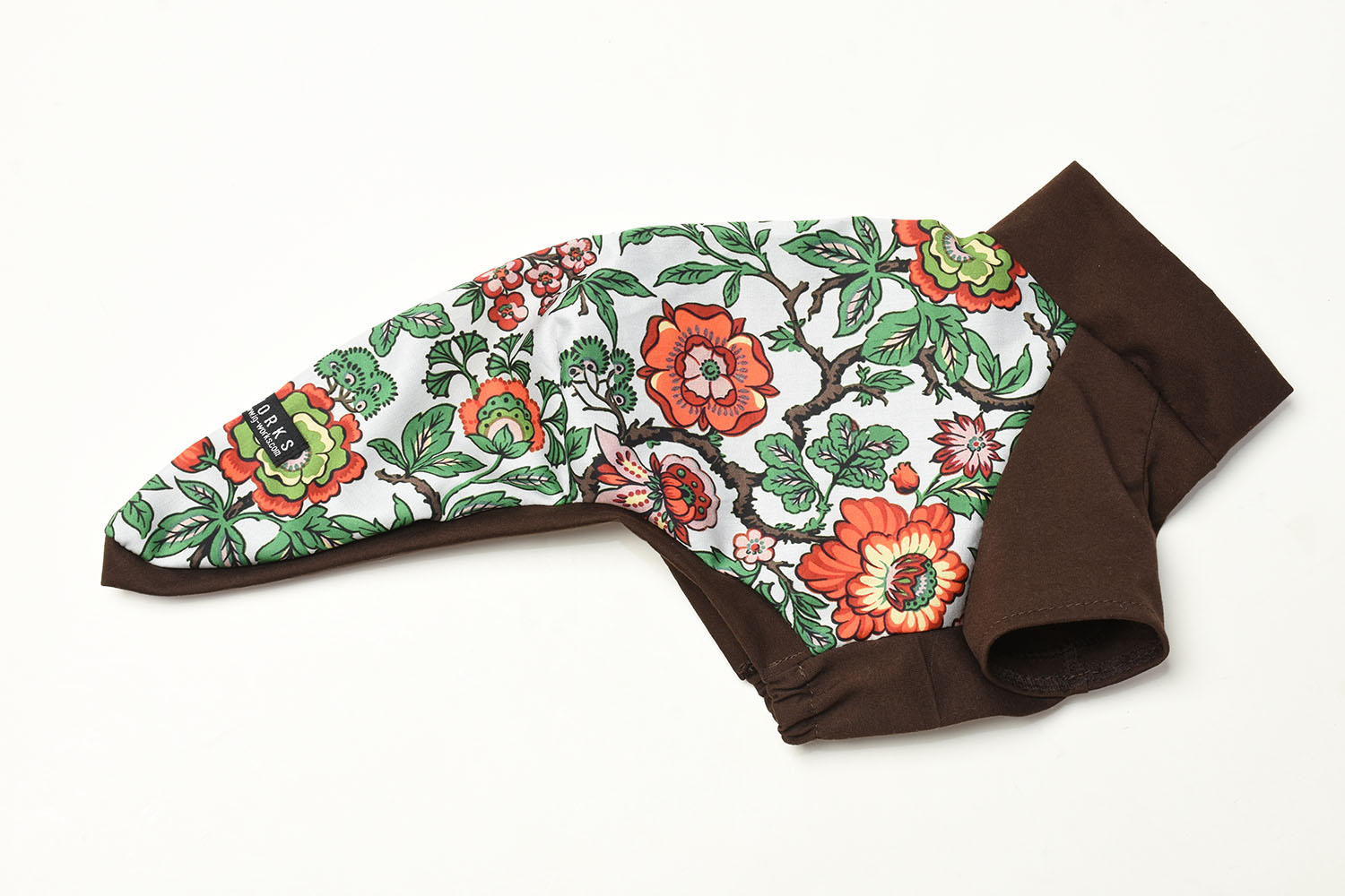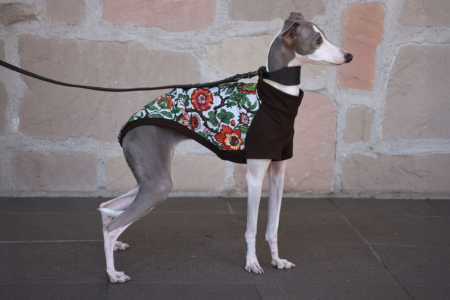 イタリアの高級テキスタイルメーカーLISA D'ESTE(リサ・デステ)のコットンサテン生地を使用した、上質なイタグレウェアです。ブランド独自の独創的なプリントデザインが特徴で、華やかさと上品さを兼ね備えた一着。シルクのような光沢感を持つコットンサテン素材は、コットン100%でありながら朱子織(サテン織り)による滑らかな肌触りと上品な艶を楽しめます。デザインは動きやすく軽やかなフレンチ袖仕様。春先のお散歩やお出かけにぴったりの一枚です。エレガントでお洒落なイタグレにふさわしい、特別感のあるウェアに仕上げました。