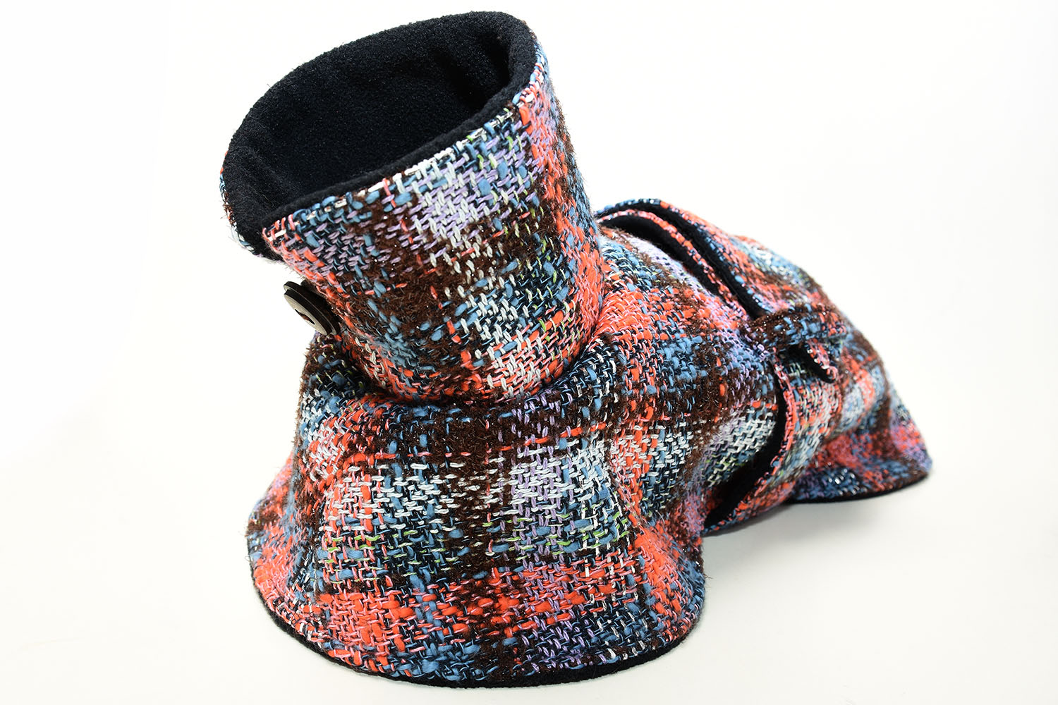 ラメ糸がきらめく、ファンシーヤーンのチェック生地を使用したIGコートです。オレンジ、ブルー、ブラウン、パープル、グリーン、ホワイト、シルバー。多彩な色を織り込んだチェック柄は、華やかでありながら上品な印象。見た目に反してとても軽く、春先のお出かけにも快適な着心地。裏地には暖かなフリース素材を使用しており、肌寒い日もしっかりと保温してくれます。軽やかさとあたたかさ、そして遊び心のある輝きを兼ね備えた一着。季節の変わり目に、コーディネートの主役として活躍します。