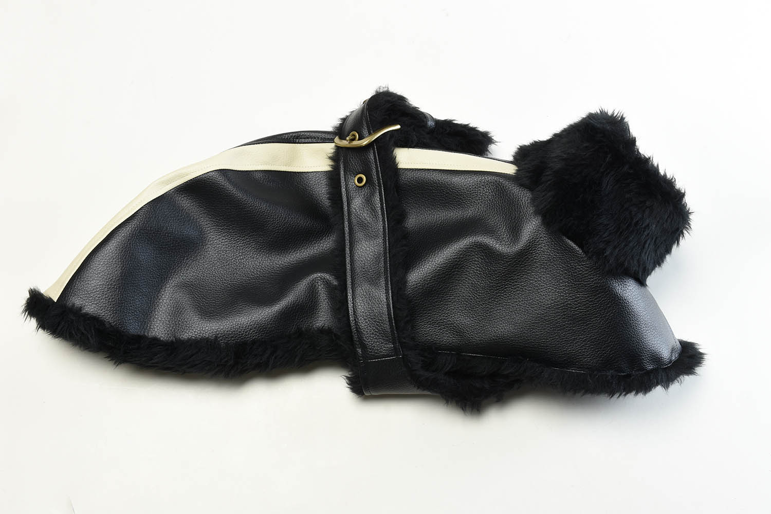 人気のハードレザー(合皮)IGコート。新作の2ラインデザインバージョンです。エレガントさにカジュアルスポーティーなイメージもプラスされ、より洗礼されたデザインに生まれ変わりました。ヌードのまま羽織るだけでとても暖かで真冬には手放せないアイテムです。襟元には貴重な水牛のトグルボタンで開閉でき、ベルトには拘りの真鍮製のバックルを採用。4段階に調整が可能です。