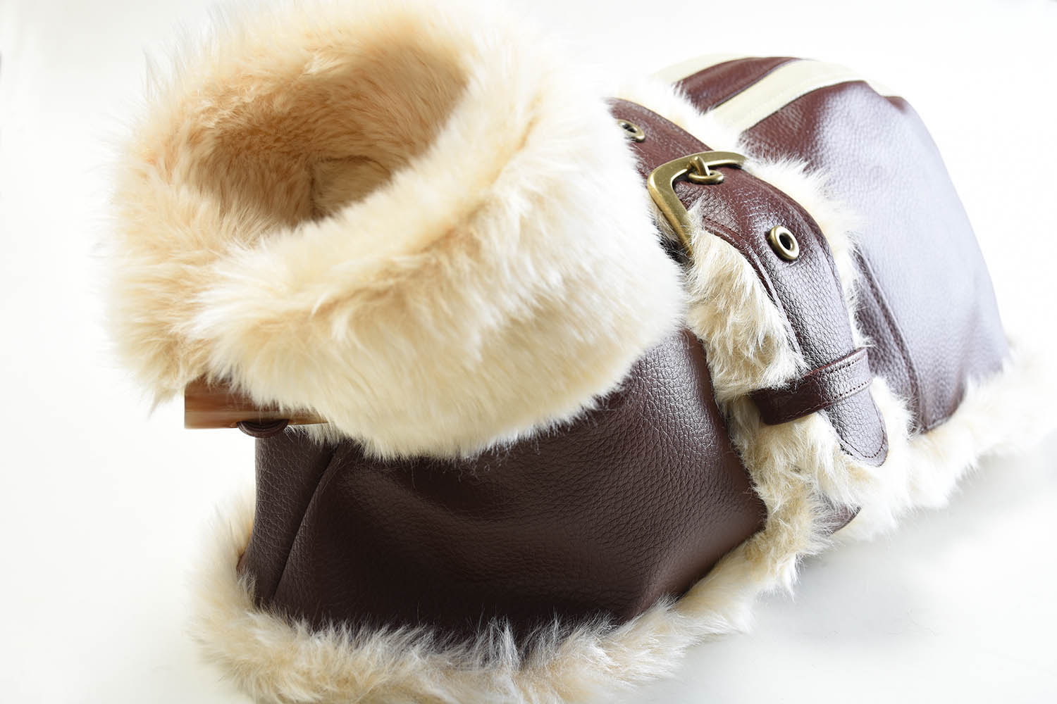 人気のハードレザー(合皮)IGコート。新作の2ラインデザインバージョンです。エレガントさにカジュアルスポーティーなイメージもプラスされ、より洗礼されたデザインに生まれ変わりました。ヌードのまま羽織るだけでとても暖かで真冬には手放せないアイテムです。襟元には貴重な水牛のトグルボタンで開閉でき、ベルトには拘りの真鍮製のバックルを採用。4段階に調整が可能です。