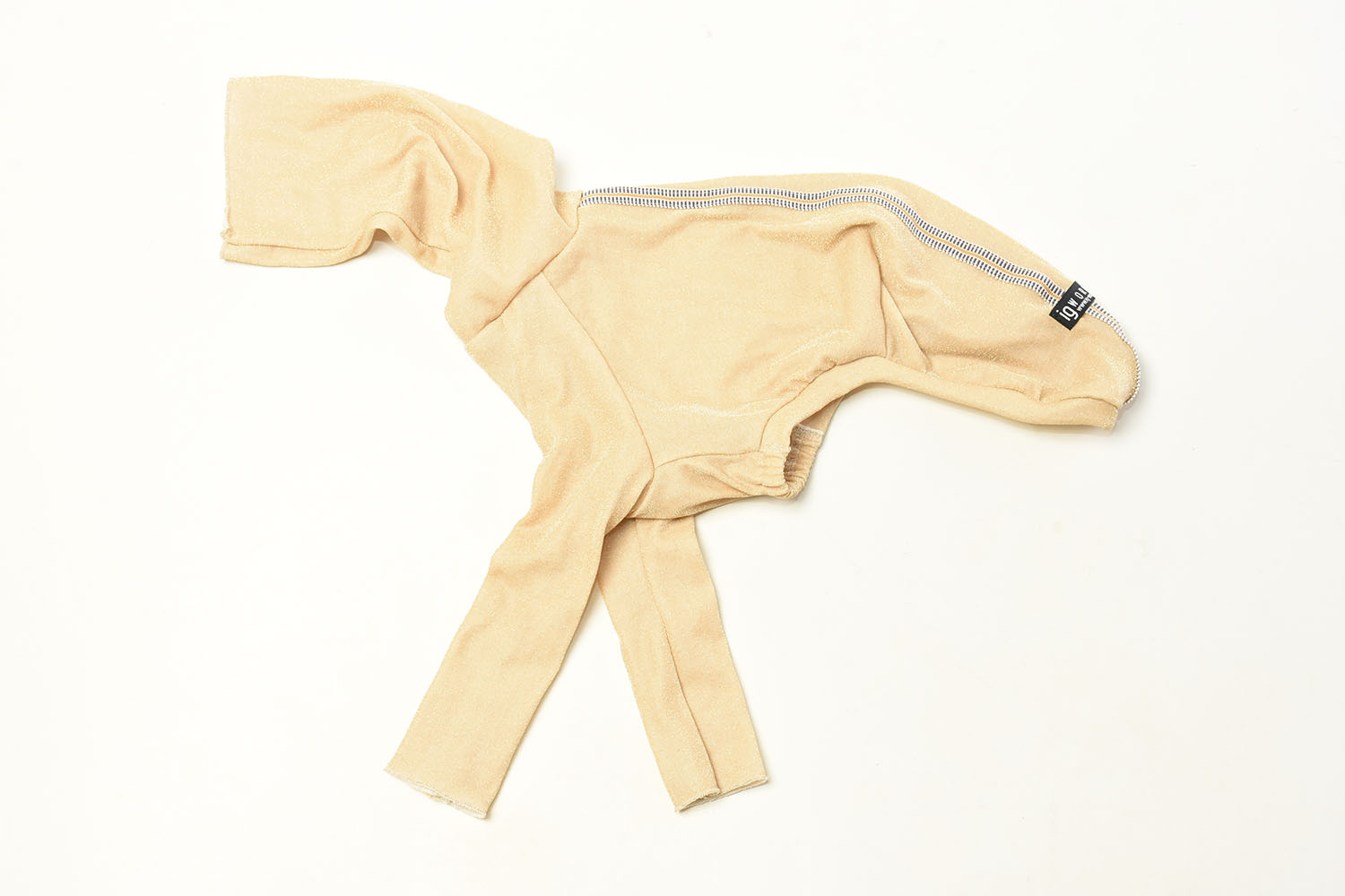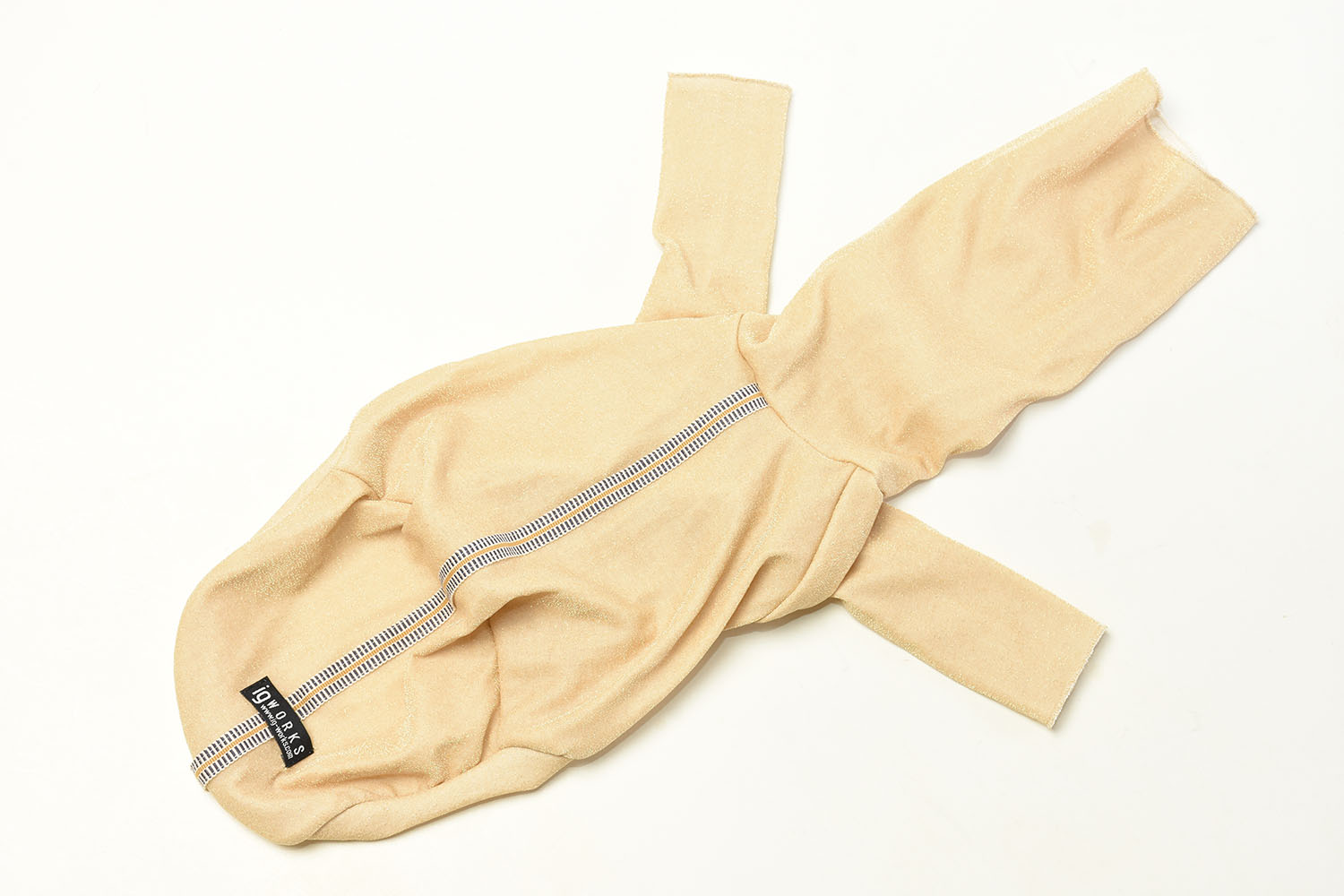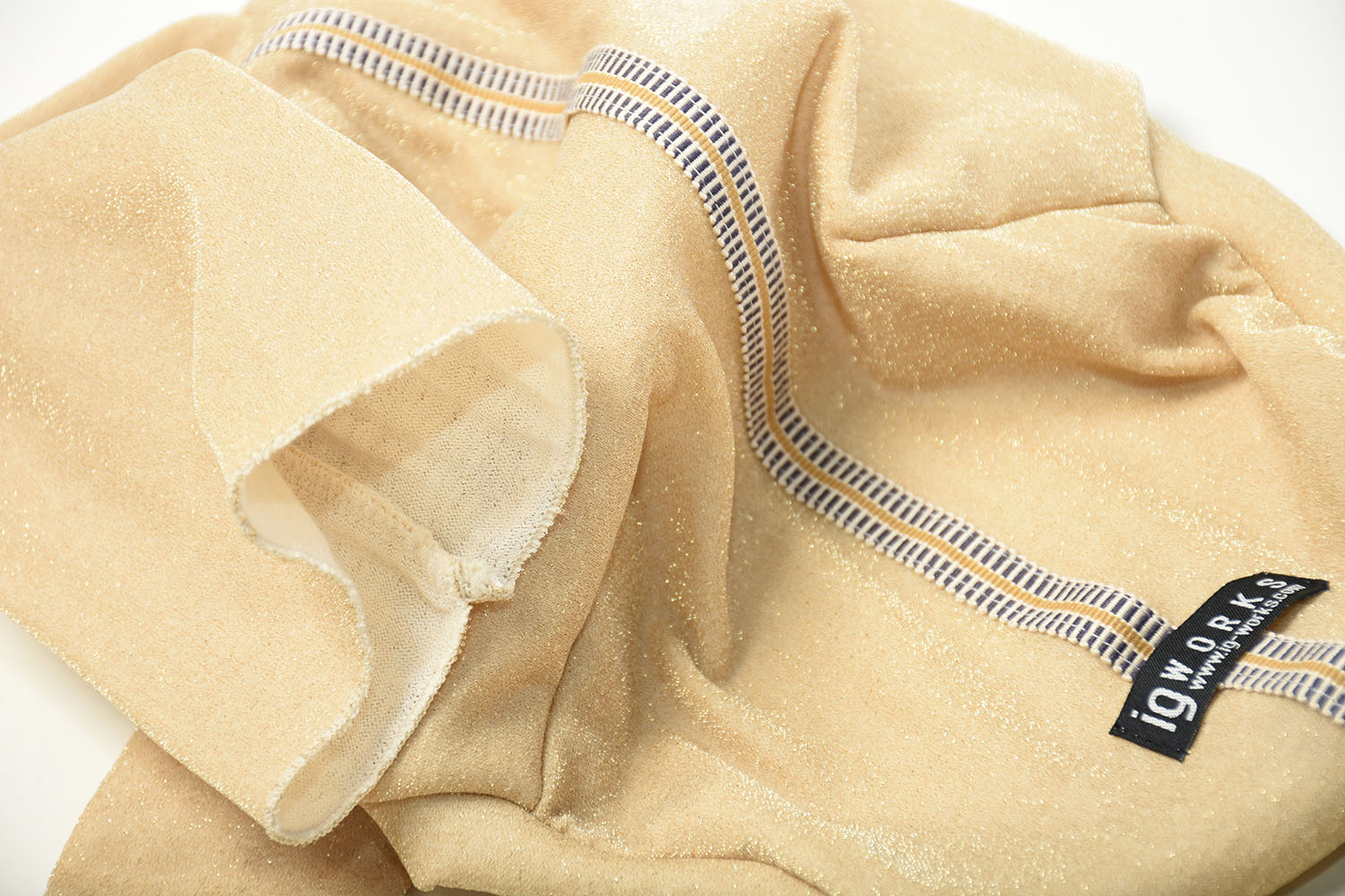 伸縮性に優れた上品なラメニット生地を使用したピチロンT。伸縮性が高いため通常のお洋服よりもやや小さめのサイズ感でデザインされており、ボディラインにフィットしつつ、かわいらしく着こなせます。首元はロングネック仕様。耳まですっぽりかぶせても、くしゅっと下げてもスタイリングが楽しめます。背中にはアクセントの真田紐をプラス。襟ぐり、袖口は巻きロック仕上げでくしゅくしゅ感を出し、細部まで可愛らしさにこだわった一着です。